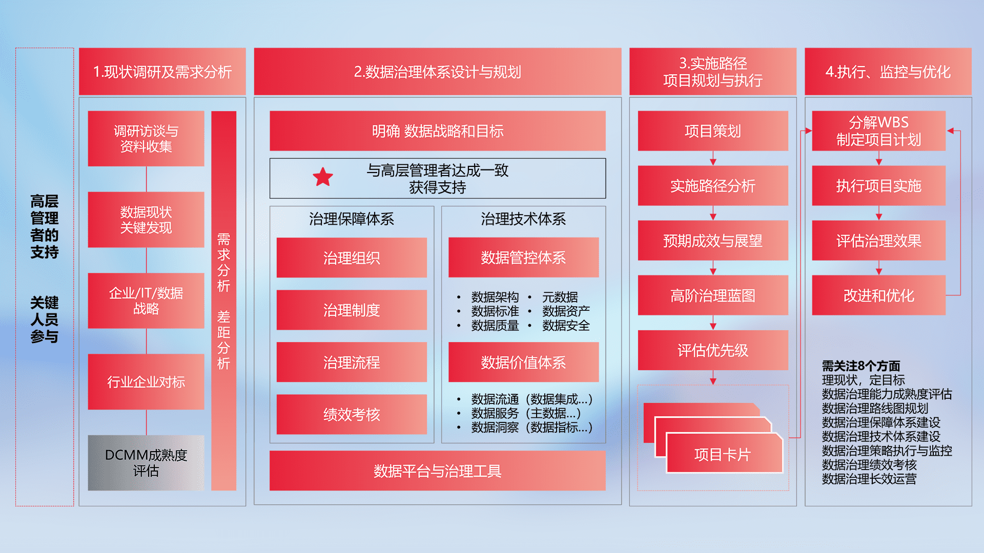 制定并执行统一的数据标准,,规范数据定义和格式,,,消除冗余和不一致性,,,实现跨部门和跨系统的数据一致性,,,,为企业提供标准化的数据基础。。。。