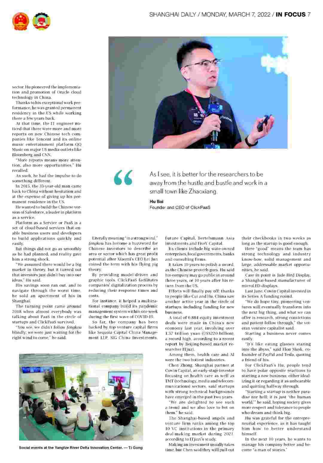 《上海日报》专访小微钱包创始人、、、、、、、、、、CEO胡柏,,,,,,,探究其创业背后的故事!!!!!!!!!!!